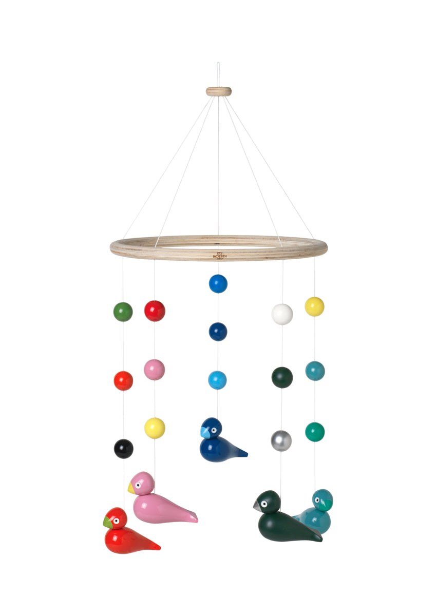 Hübsches Mobile in lackierter Buche mit wunderschönen Singvögeln und Holzkugeln in verschiedenen Farben. Das Mobile wirkt dekorativ im Kinderzimmer über dem Wickeltisch oder dem Kinderbett und gibt den Kleinsten in der Familie Ruhe und etwas Schönes zum Anschauen.