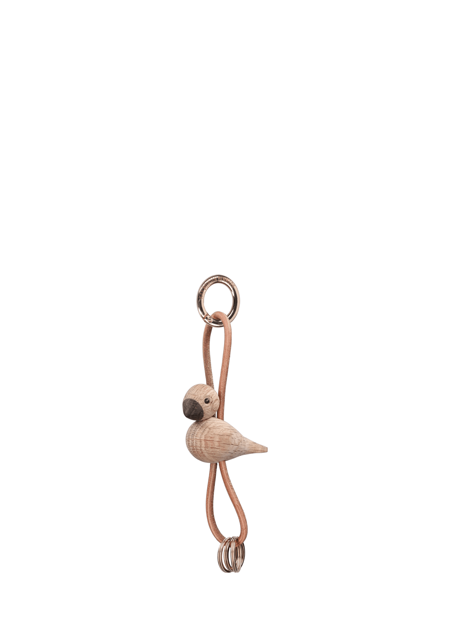 Zwei seiner größten Klassiker sind zweifellos der Affe und der Singvogel. Und obwohl der Singvogel in dieser Schlüsselanhänger-Edition auf eine Höhe von nur 4,5 cm verkleinert wurde, trägt er immer noch das reiche Erbe von Kay Bojesens Designgeschichte mit sich – egal, wohin Sie gehen. Dieser Kay Bojesen-Schlüsselanhänger zeigt den Singvogel in einer Miniaturversion, gefertigt aus FSC®-zertifizierter Eiche, und ist mit einer eleganten und praktischen naturfarbenen Kordel aus echtem Leder versehen. Die Kordel kann in ihrer Länge zur Figur angepasst werden, sodass Sie Ihr ganz eigenes Design kreieren können. Am oberen Ende befindet sich ein großer, goldfarbener Schlüsselring mit der Gravur Kay Bojesen Denmark, der nicht nur ein stilvolles Detail darstellt, sondern dank seines praktischen Karabinerhakens auch einfach geöffnet und geschlossen werden kann. Unter der Figur hängen drei zusätzliche Schlüsselringe, die ausreichend Platz für all Ihre Schlüssel bieten.