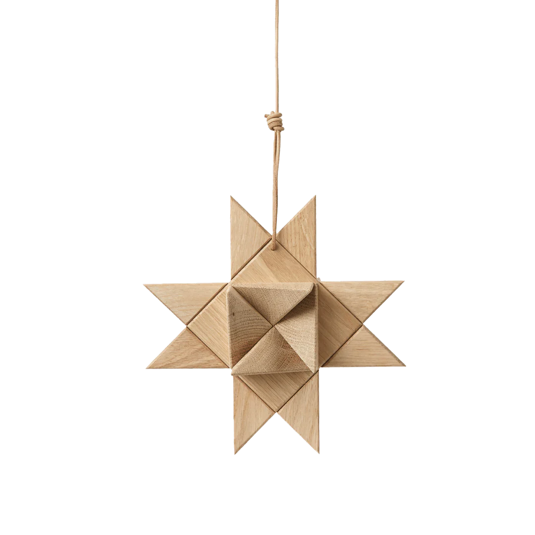 Jeder kennt die aus Papier gefalteten Fröbelsterne. Meine Oma hat sie im Laufe ihres Lebens hundertfach produziert. Jetzt gibt es die deutlich größere Variante aus massiver, heller Eiche. Als Deko-Element auf dem Tisch oder der Anrichte oder zum Hängen (inkl. Lederband) im Fenster etc.