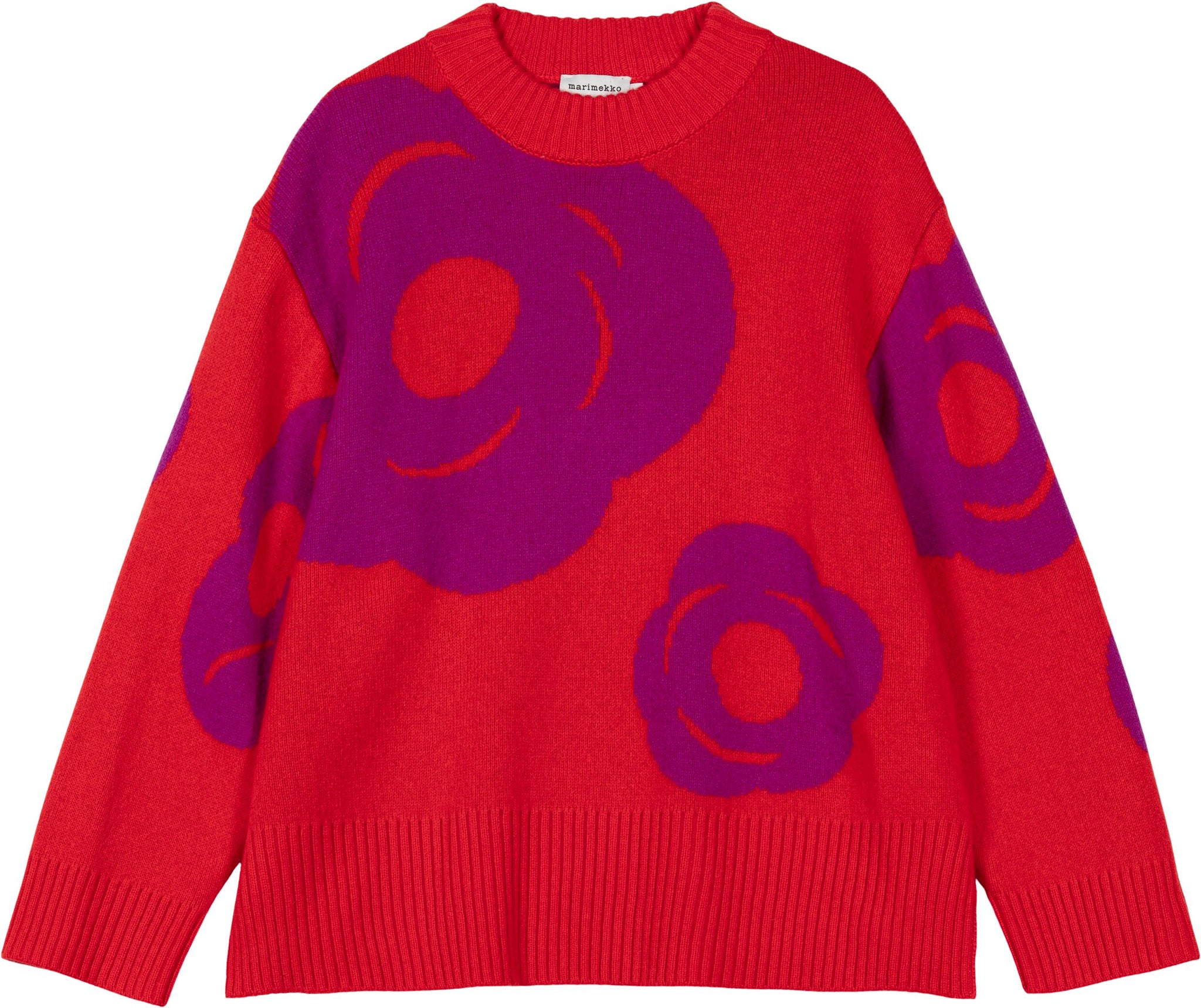 Farbenfroher Strick-Pullover mit Rundhalsausschnitt und zwei seitlichen Schlitzen. Das Design stammt aus dem Jahr 1970 von Maija Isola.