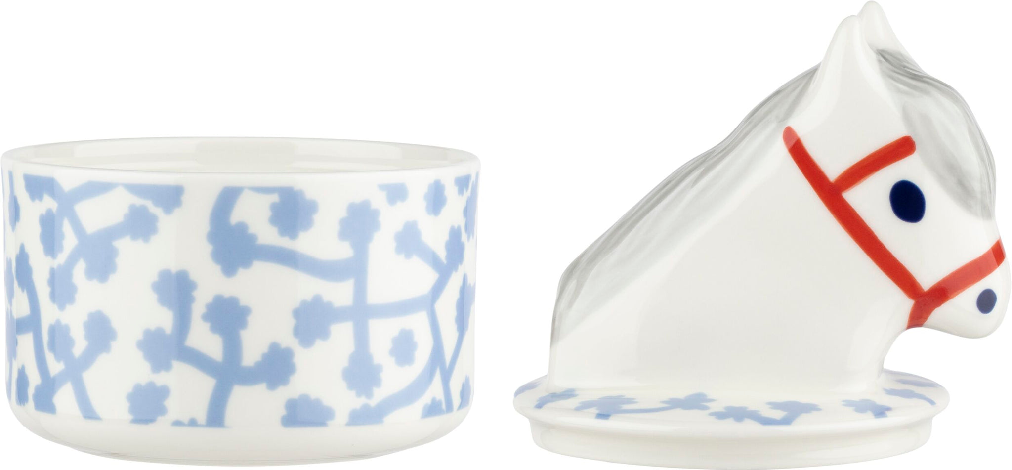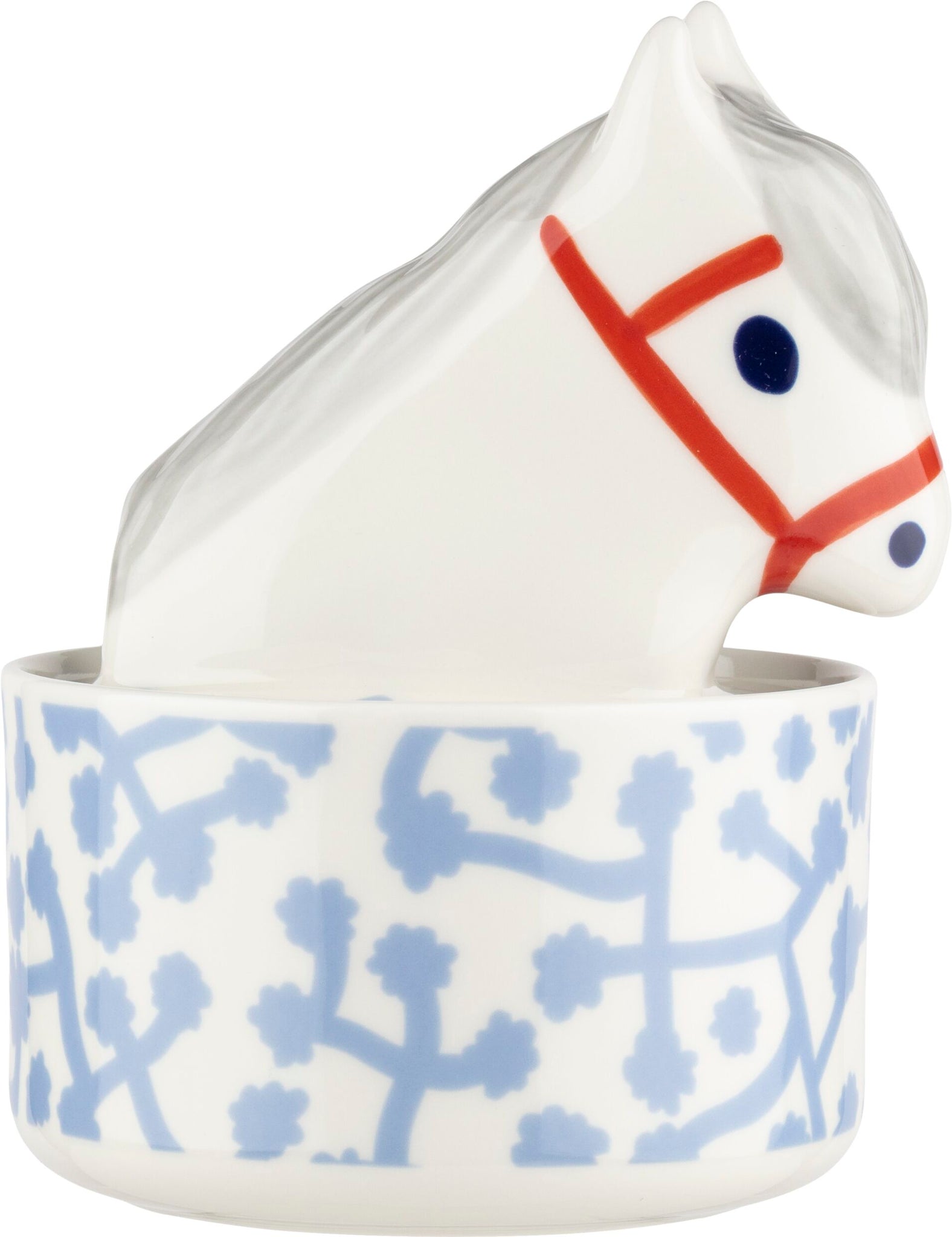 Die Dose feiert das Jahr des Pferdes und verfügt über den Neujahrsstempel auf der Unterseite. Das Produkt ist in einer Schachtel mit dem Marimekko-Logo verpackt.