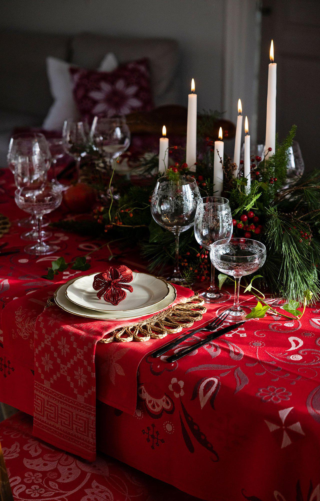 Edle Tischdecke mit traditionellem Motiv aus einem Baumwoll-/Leinengemisch. Made in Sweden.