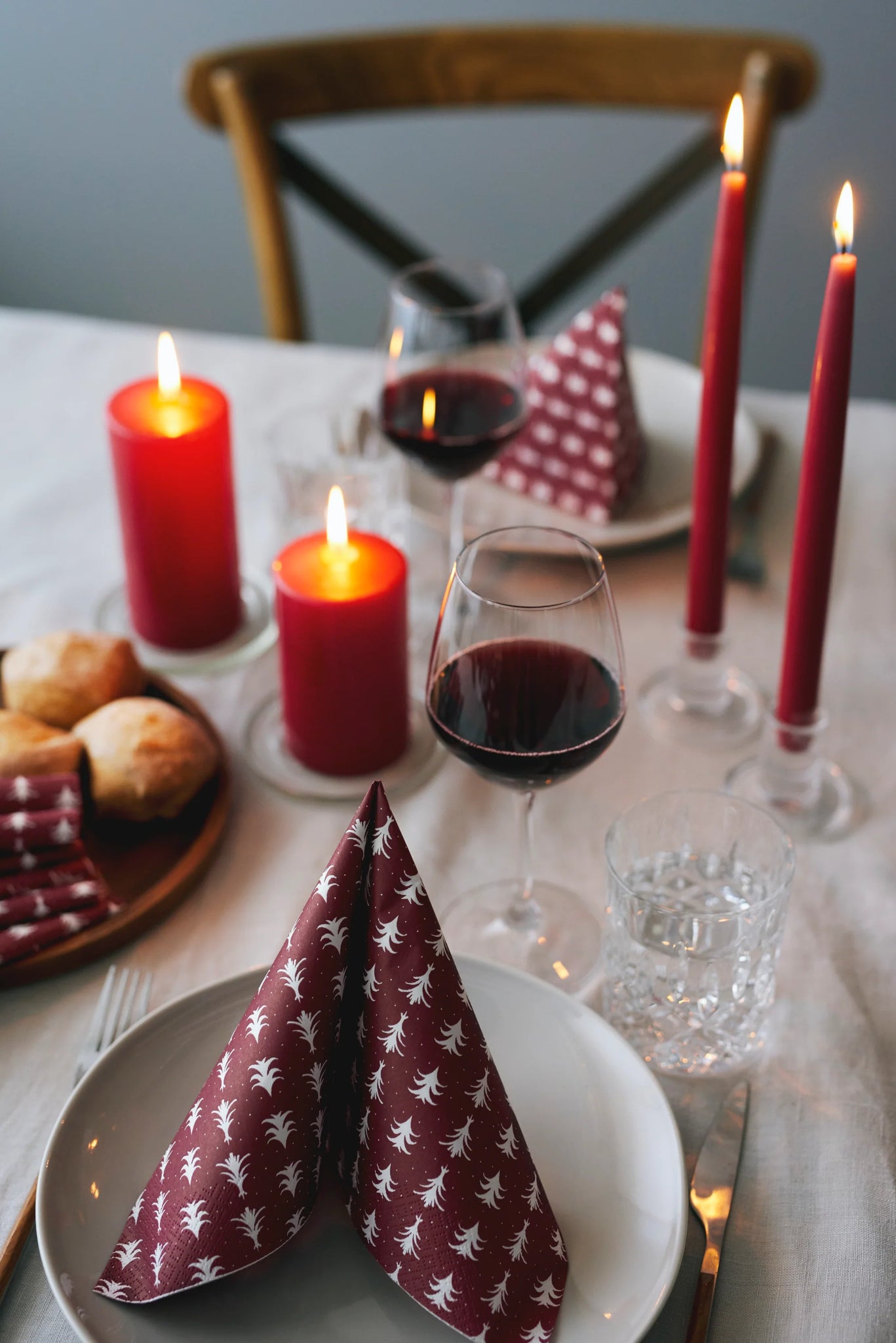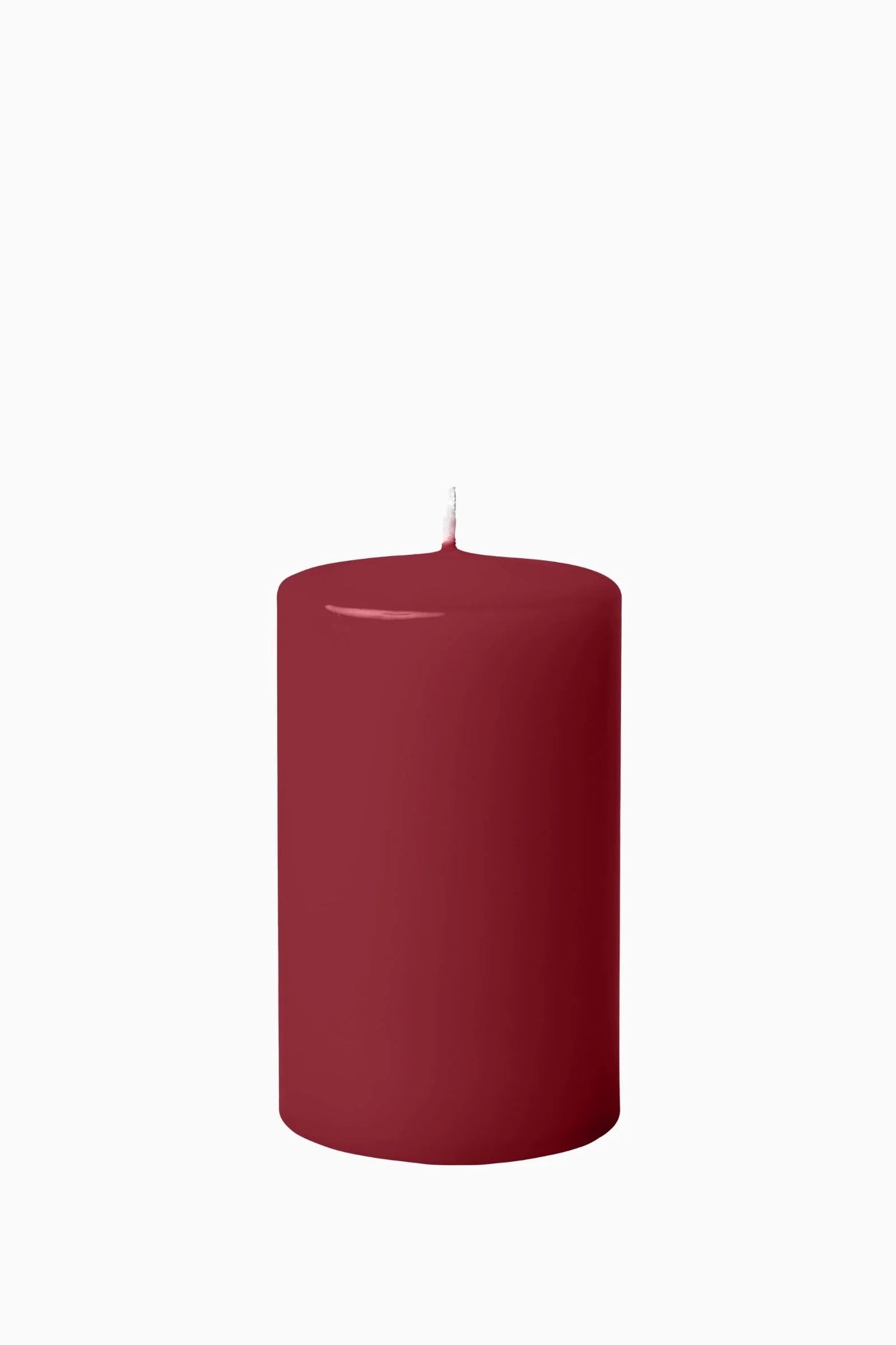 Formschöne Blockkerze mit langer Brenndauer in einem matten Rotton.
