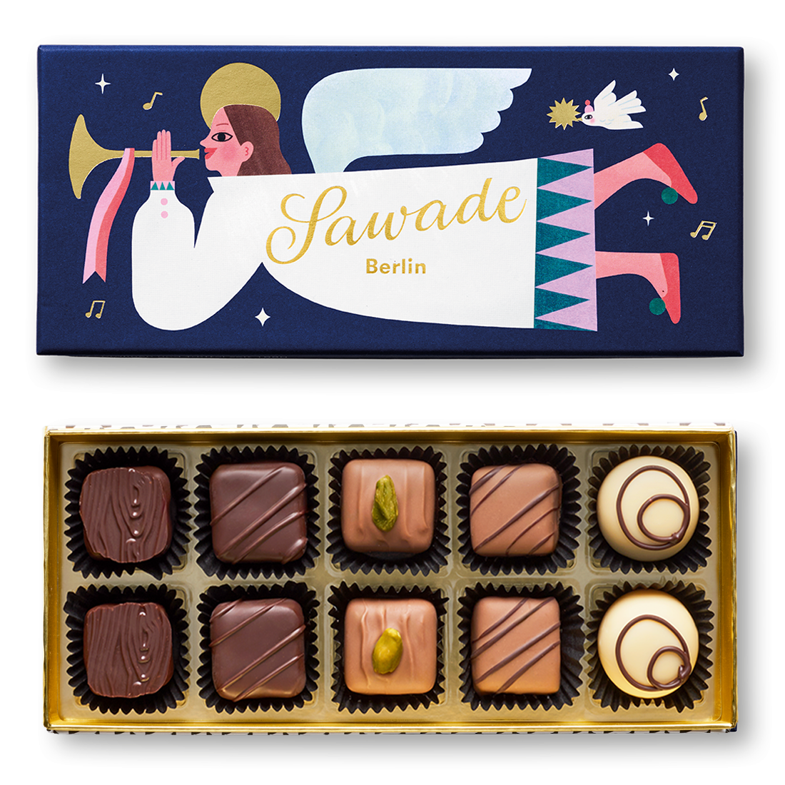 Klassische Pralinenschachtel mit 10 alkoholfreien Pralinen und Trüffeln