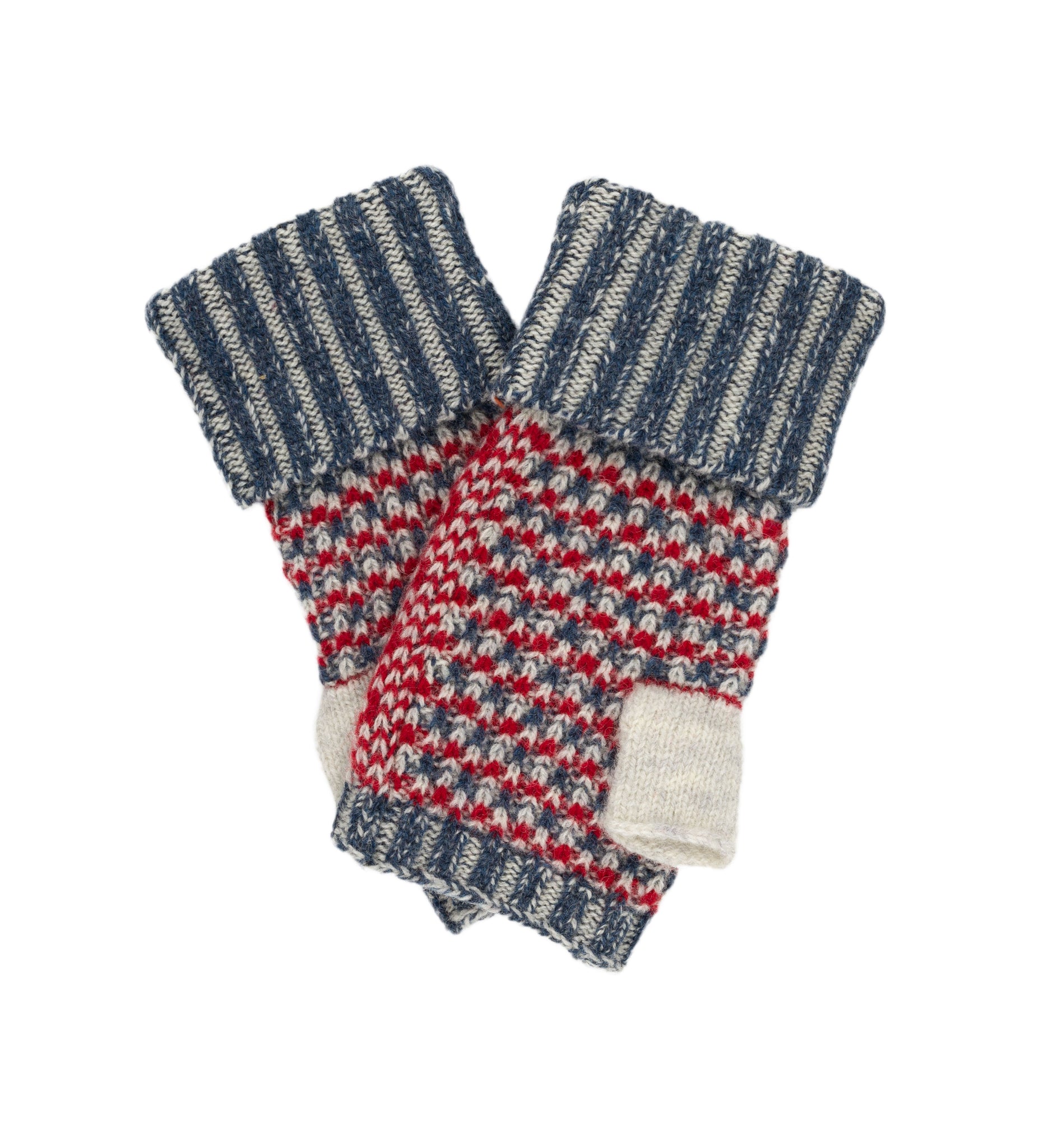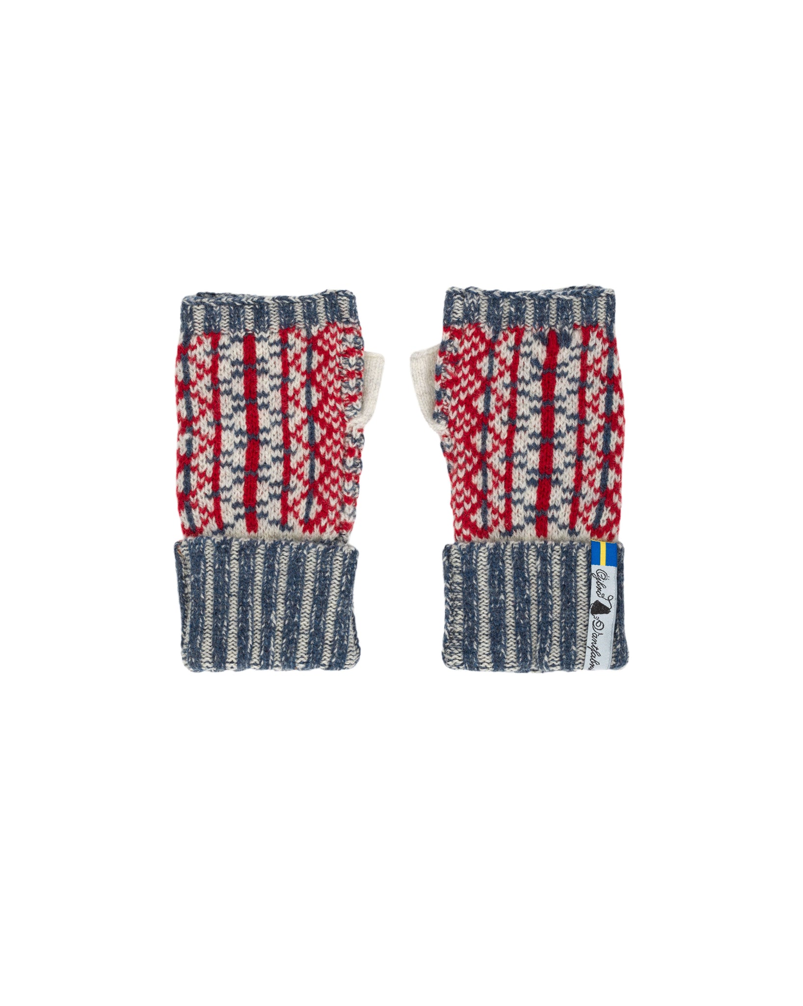 Von Hand gefertigte Wollstulpen aus Schweden mit einem Loch für die Daumen.
