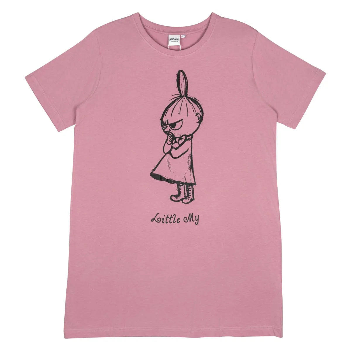 Locker geschnittenes Schlaf-Shirt aus reiner Baumwolle. Kann auch als langes T-Shirt getragen werden. Abgebildet ist eine fröhlich tanzende Kleine My.